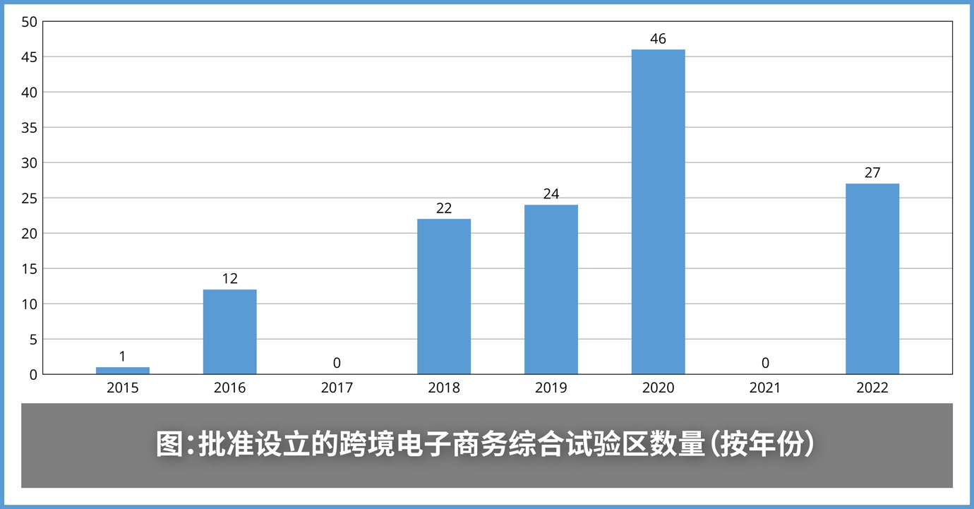 按照该函件所述的发展方向,2018年至2022年,全国设立119个跨境电子商务综合试验区,使这些试验区总数达到132个(见)。这些试验区几乎覆盖了中国所有的省级地区。