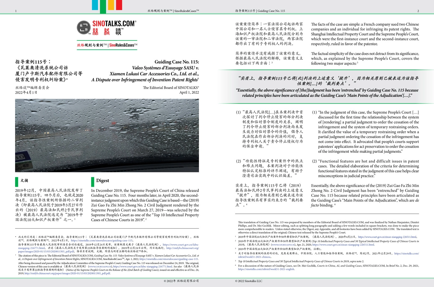 † 此文的引用是:丝络谈™编辑委员会,指导案例115号:《瓦莱奥清洗系统公司诉厦门卢卡斯汽车配件有限公司等侵害发明专利权纠纷案》,丝络谈™,丝络灼见™,2022年4月1日,https://zh.sinotalks.com/sinoinsights/guiding-case-115。指导案例115号由最高人民法院审判委员会讨论通过,2019年12月24日发布。除非另有说明,文摘、附录与所有注释均由丝络谈™添加。