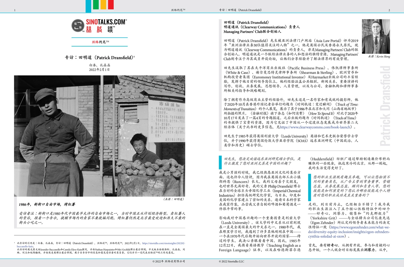 † 此专访的引用是:白溱、孔晶晶,专访:田明道(Patrick Dransfield),丝络谈™,丝络灼见™,2022年2月1日,https://zh.sinotalks.com/sinoinsights/interview-patrick-dransfield。