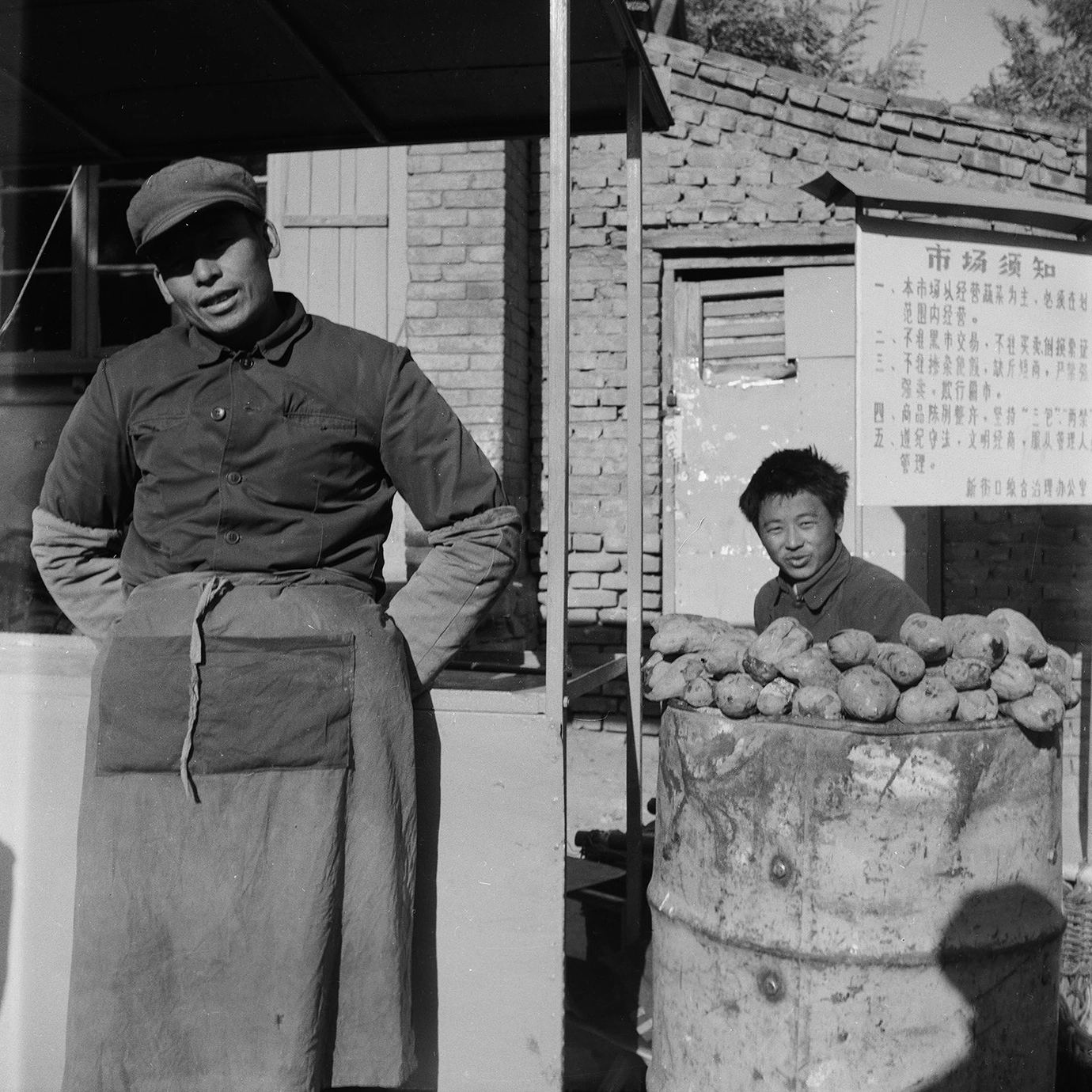 受访者注:新街口是1980年代中国最早允许的自由市场之一,当时中国正从计划经济转型。卖红薯人的背后,挂着一个告示,提醒市场内的卖家不要欺骗同胞。烤红薯仍然是北京最受欢迎和历久不衰的街头小吃之一。